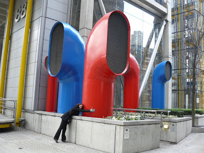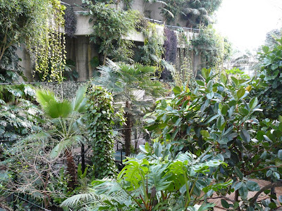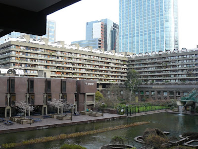 Vous prendrez les escalators qui vous meneront à un labyrinthe de passerelles où il semble si facile de se perdre. Heureusement des indications "barbican center" permettent d'arriver sur une immense place ou se trouvent une église, un petit étang et le centre culturel de Barbican, autour desquels se dressent des immeubles datant des années 60.